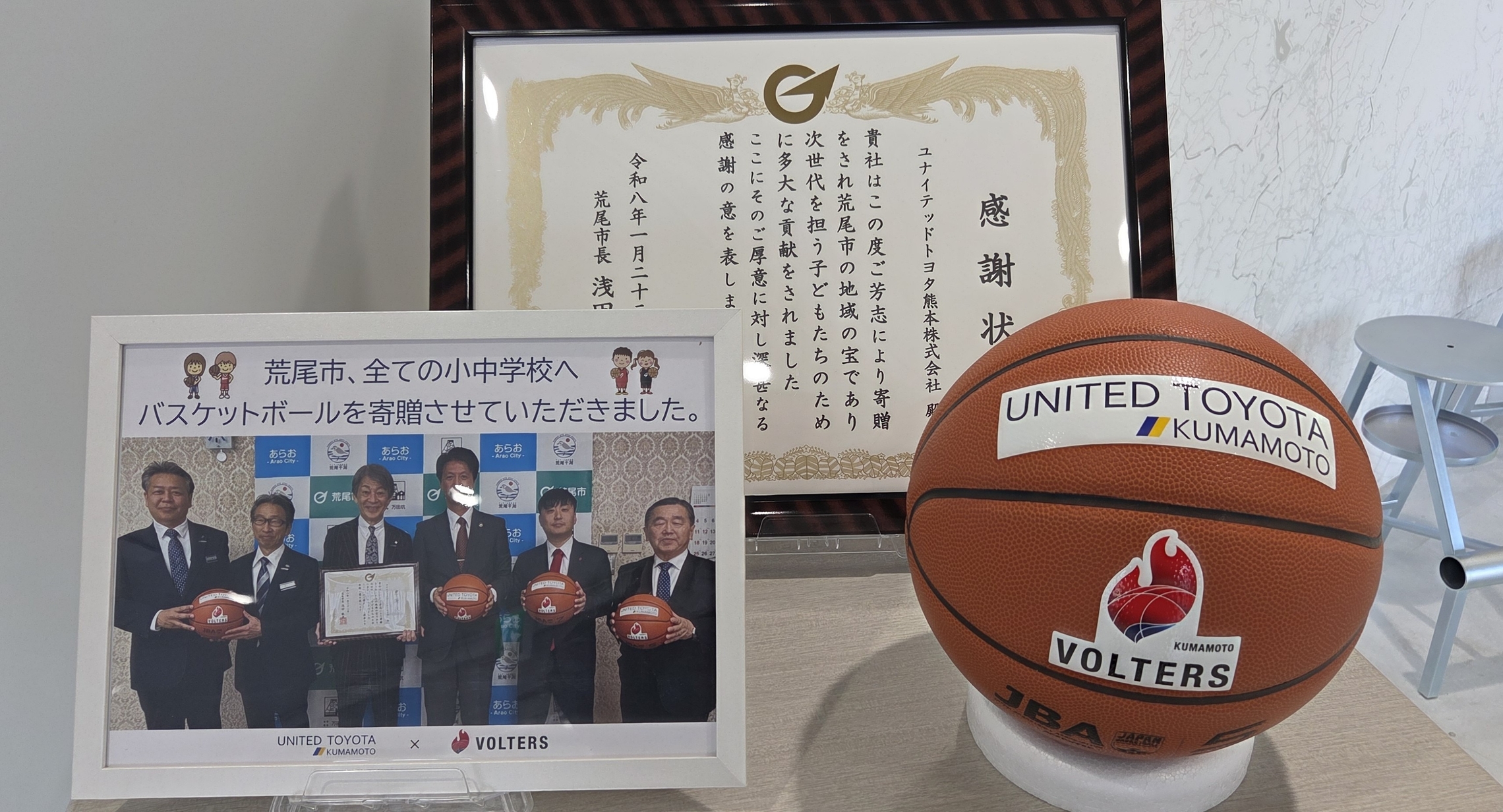 ユナイテッドトヨタ熊本株式会社(本社:熊本市中央区 代表取締役:西 治三朗)は、荒尾市の全小中学校へバスケットボールを寄贈いたしました。