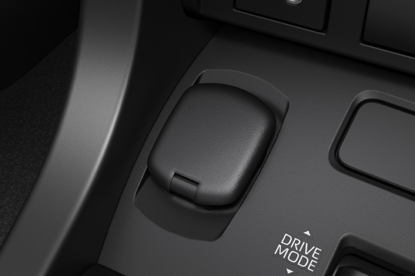 カップホルダーは取り外し可能なアタッチメント付で、収納したいものに合わせて、スペースをアレンジできます。また、リヤコンソールボックスは深さの異なる2分割構造にし、使い方の幅を広げました。スマートフォン、ドリンクなどに加え、工具、トランシーバーなども収納可能になるよう設計しています。
