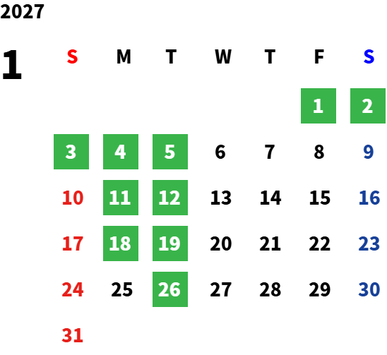 営業日カレンダー